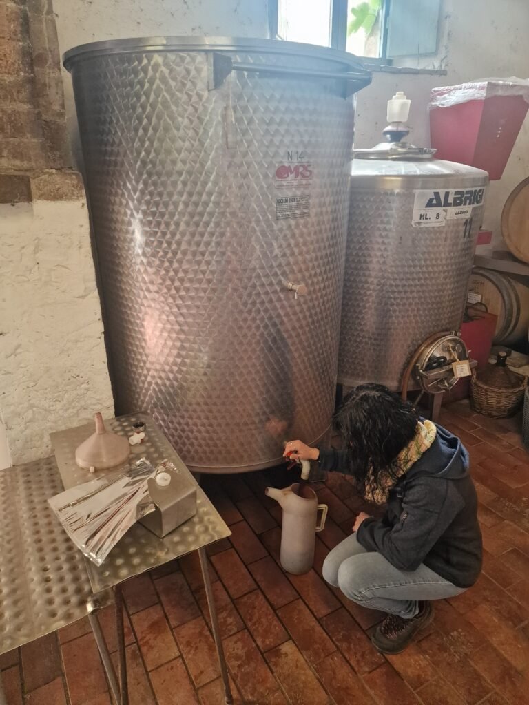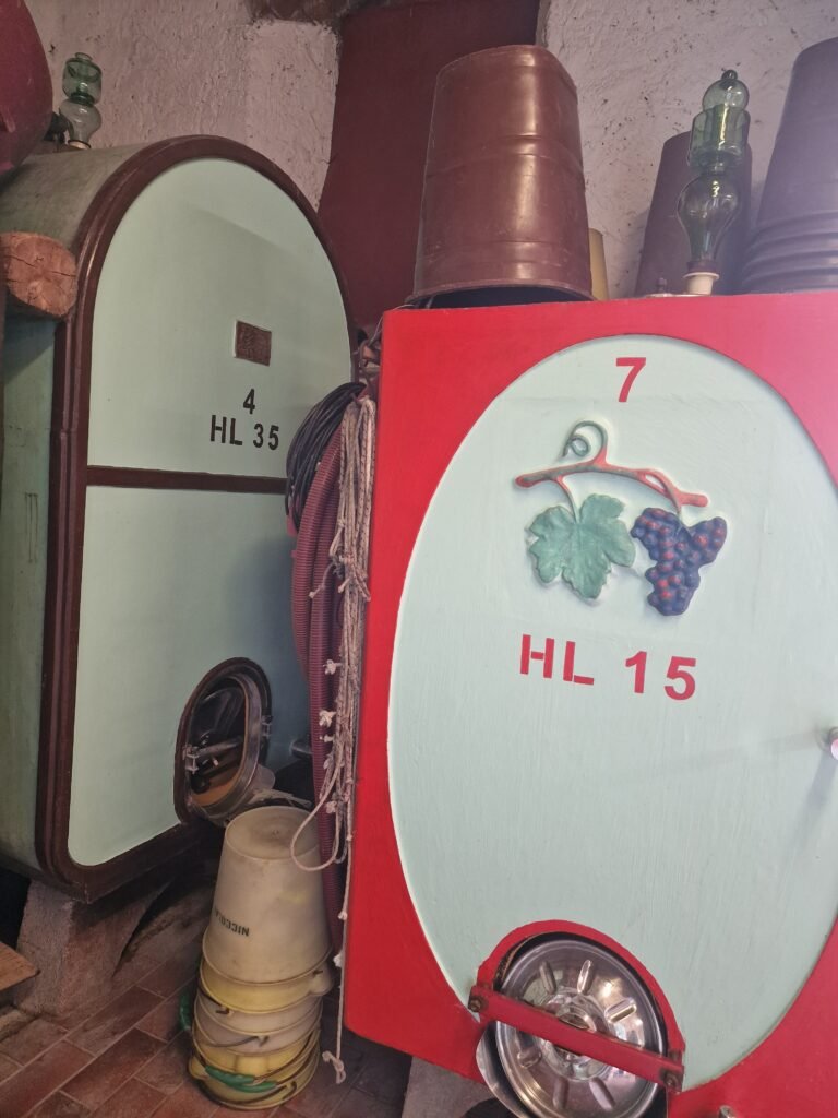 Het leukste van deze tasting vonden wij om een doos wijn te vragen. Je mag dan met Martina de wijnkelder in en kan dan zien hoe zij de zak met wijn recht uit het vat vult. Een mooie kelder waar op de ouderwetse manier gewerkt wordt in de betonnen wijntanks. Een leuke intieme ervaring!