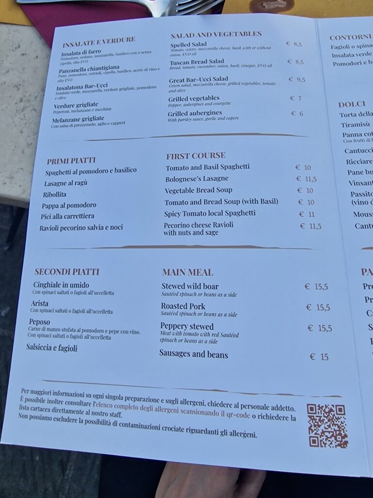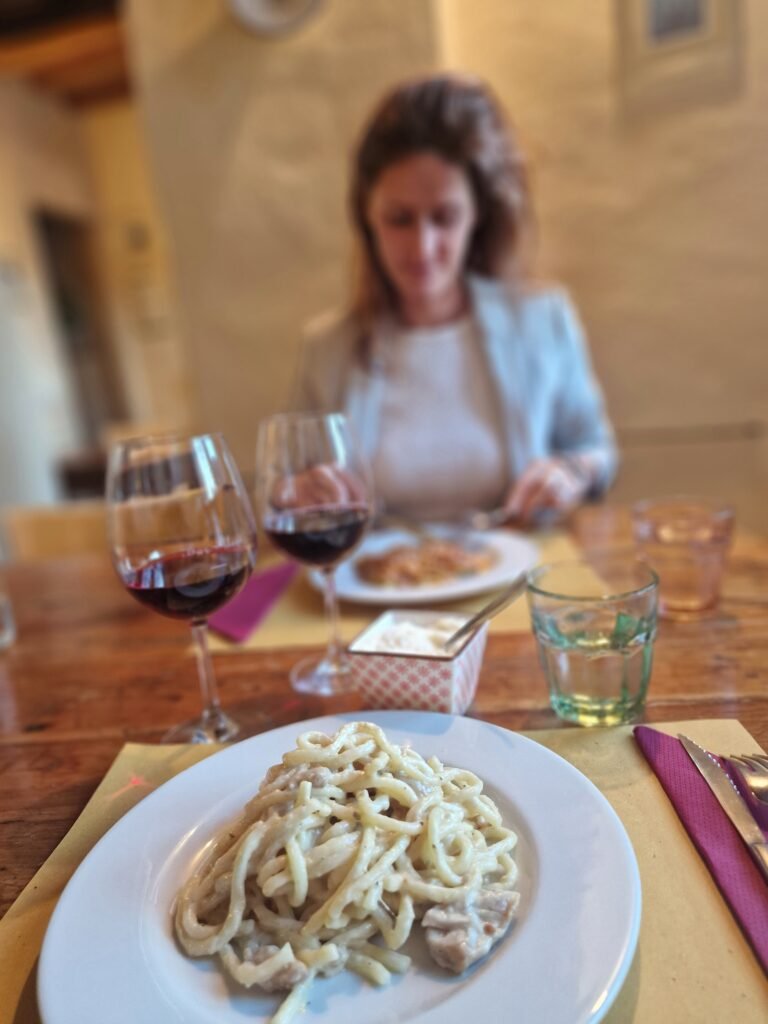 Een pasta is wat je hier sowieso echt wil eten! Vaak hebben ze naast de standaard mogelijkheden ook nog een of twee opties van de dag. Als je geluk hebt dan krijg je de kans om de pici met truffel en paddenstoelen te nemen, echt verrukkelijk. Maar ook de lasagna blijft hier erg lekker. De bordjes worden niet echt opgemaakt, maar dat kan je ook niet verwachten voor de prijs die je betaald. Voor nog geen 12 euro heb je hier een stuk lasagna waar je U tegen zegt.