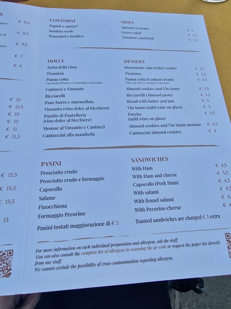 Wat wel een goed idee is om nog een plekje over te laten voor een dessertje.  Probeer de torta della Gina, gemaakt door de moeder van Paola, of als je het toch niet kan laten pak dan de traditionele tiramisu. Gewoon omdat het kan.