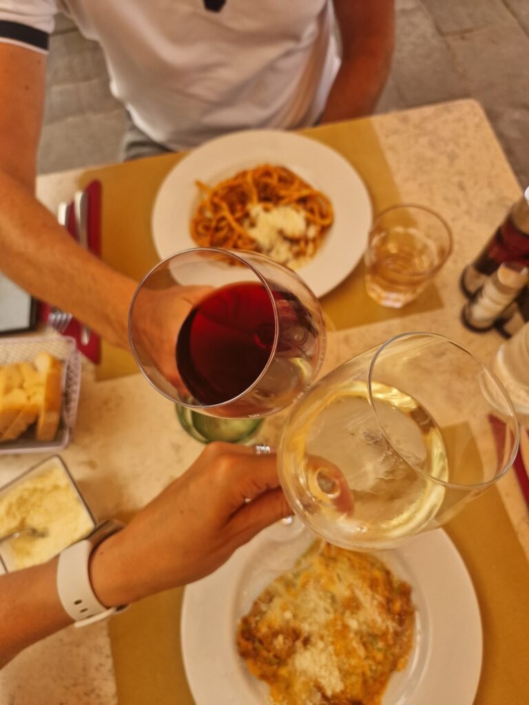 Ondanks dat Bar – Ucci een wijnbar is kun je hier ook fantastisch eten! Laat dit ook niet aan je voorbij gaan. Plan het zo dat je bijvoorbeeld eerst deze schitterende wandeling maakt, en daarna afsluit op het terras bij Bar – Ucci met een verrukkelijke Italiaanse lunch. Je kan hier ook ’s avonds eten, maar ikzelf zit hier het liefst buiten op het terras in de zon.