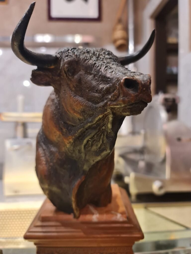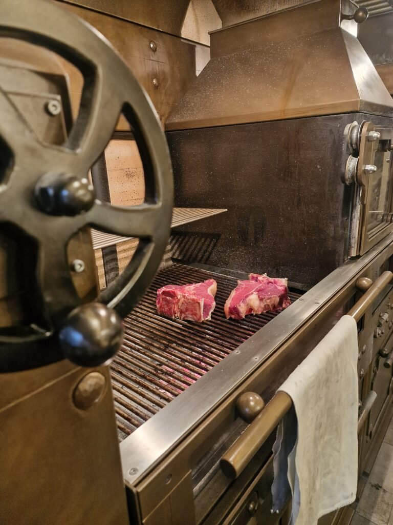 Eyecatcher van dit restaurantje is de grote moderne grill waar je de vonken vanaf ziet spetteren, terwijl de grote stukken vlees bereid worden. Een pronkstuk welke de eigenaar in 2025 uit Spanje heeft laten overkomen en waar men maar al te trots op is. Daarnaast staan er echte kwalitatieve snijmachines en aan de muur hangen schilderijen met afbeeldingen van karkassen en lampen gemaakt van koehoorns. Alles staat in het teken van vlees, erg leuk om te zien!