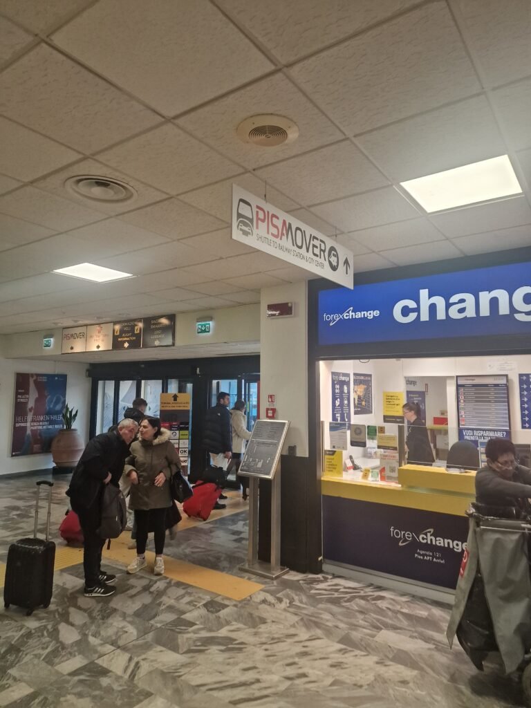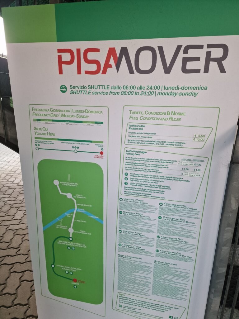 Zodra je op het vliegveld van Pisa geland bent zie je in de aankomsthal borden hangen met daarop Pisamover.